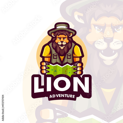 Lion holding a map, mascot logo design illustration vector isolated on white background