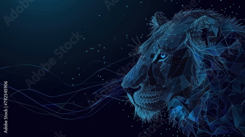 Lion low poly design, animal abstract geometric image, wild cat wireframe mesh polygonal AI generated
