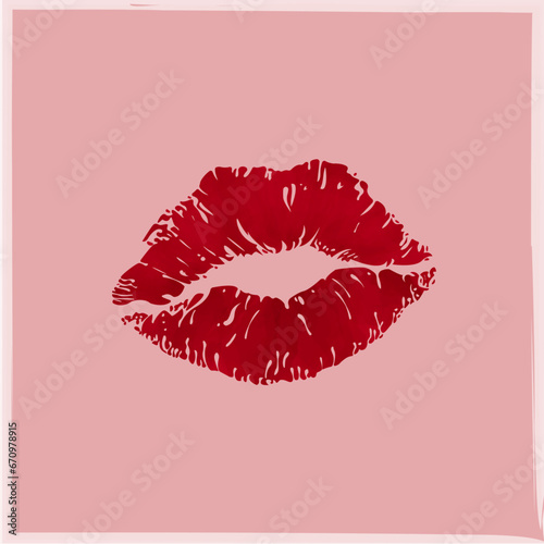 Lip print Kiss on a pink background in a white watercolor frame