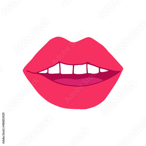 lips with pink lipstick icon. mouth vector illustration hand drawn in cartoon style.