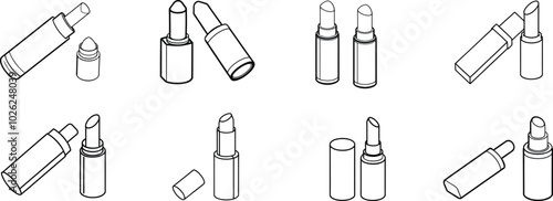 Lipstick Tube Set Illustrations Outline Design