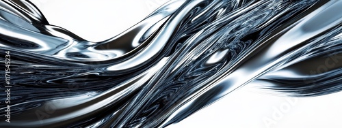 Liquid metal surface, flowing chrome waves, abstract metallic texture, glossy reflective material, silver fluid dynamics, futuristic mercury-like substance, smooth undulating forms, high contrast high