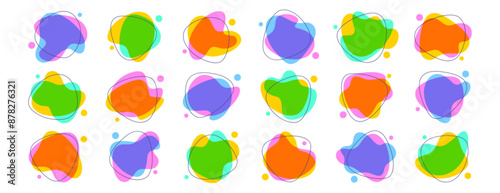 Liquid organic blob shape with irregular forms set in vibrant colors. Colorful simple freeform, asymmetric abstract figures with lines. Random deformed spots. Fluid round amoeba splodges, uneven blots