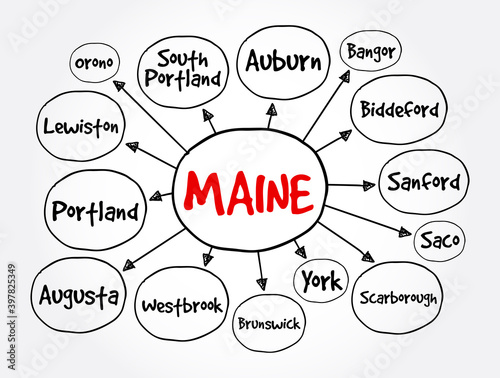 List of cities and towns in Maine USA state mind map, concept for presentations and reports