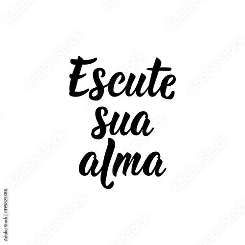 Listen to your soul in Portuguese. Lettering. Ink illustration. Modern brush calligraphy.