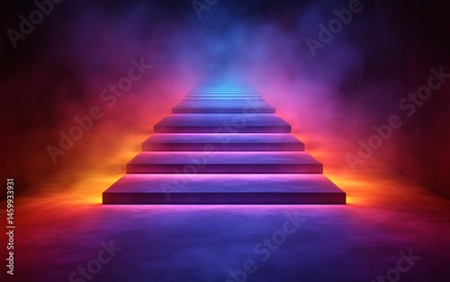 Lit Stairs Leading Into Bright Colorful Smoke And Light