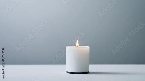 Lit White Candle on Neutral Background
