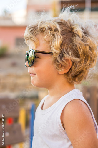 Little blond boy with sunglasses