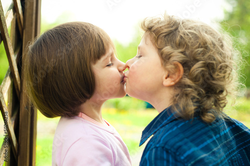 little boy kisses girl