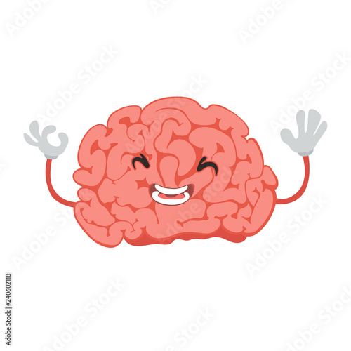 Little brain with a face and hands, laughing