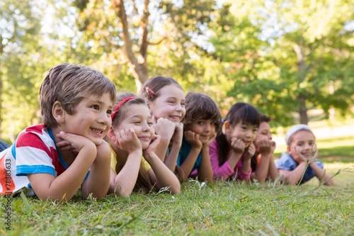 Little children smiling in a row