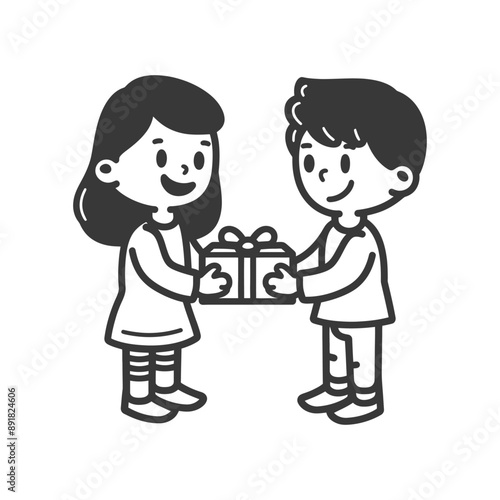 little girl and little boy couple minimalist line art icon logo symbol