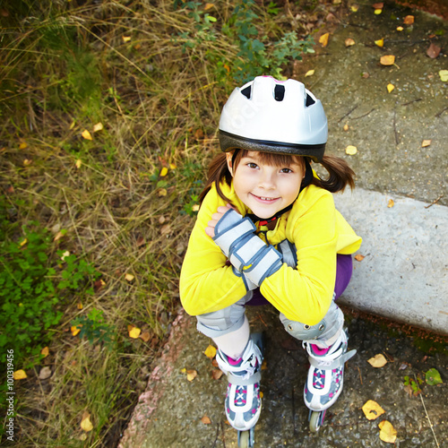 Little girl in roller skates at a park