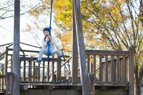 Little girl playing in the autumn park