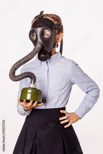 little girl with gas mask