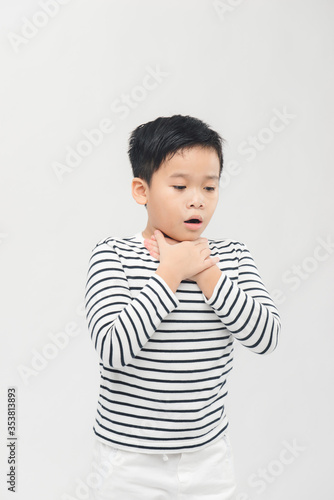 Little ill boy get sore throat or choking can't breath with unhappy. Allergy concept
