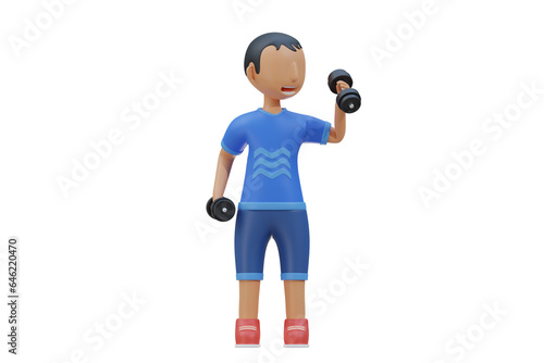 Little kid do workout with lift dumbbell 3d Illustration