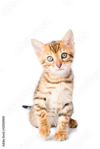 little kitten looking into the camera on a white background