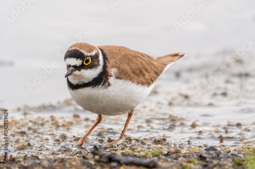 Little ringed plover (Charadrius dubius), bird standing on the lake shore