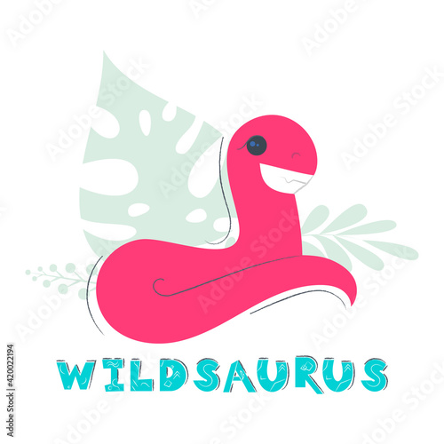 little snake illustration for baby print. Cute cartoon snake in tropical leaves with title or saying fastsaurus. Childish print for nursery, kids apparel,poster, postcard. Vector Illustration