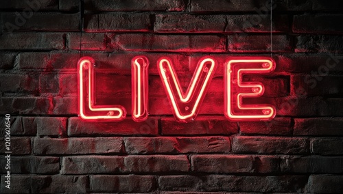 Live event sign urban setting neon lighting nighttime concept creative atmosphere