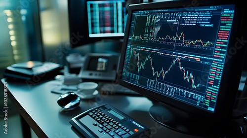 Live stock data displayed with charts and market volume on a computer trading platform