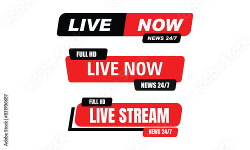 Live streaming set red icons Play button icon vector, Facebook live stream with smart play icon