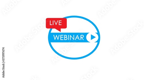Live webinar label. Suitable for design elements from webinar streaming, online seminar buttons, internet courses, and distance learning. Webinar banner.
