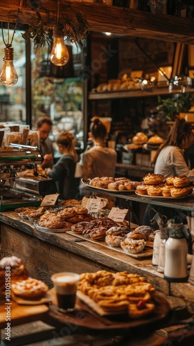 Lively Cafe Scene with Customers Enjoying Pastries