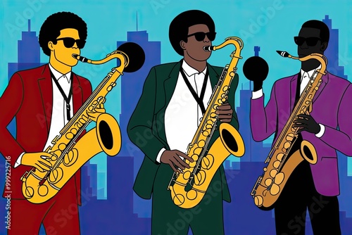 Lively Jazz Saxophone Vibes in Urban Groove Art Illustration