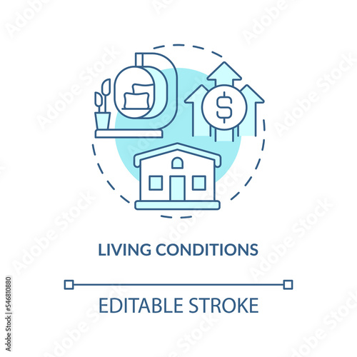Living conditions turquoise concept icon. Basement of inclusive growth index abstract idea thin line illustration. Isolated outline drawing. Editable stroke. Arial, Myriad Pro-Bold fonts used