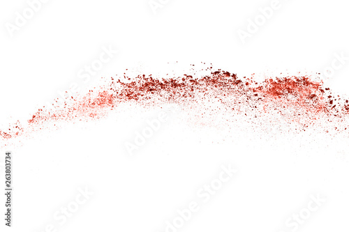 living coral color powder explosion on white background. Colored cloud. Colorful dust explode. Paint Holi.
