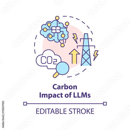 LLMs carbon impact multi color concept icon. Artificial intelligence environmental impact. Round shape line illustration. Abstract idea. Graphic design. Easy to use in infographic, presentation