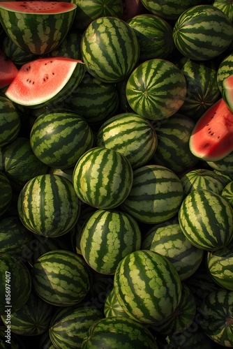 Loads of Sweet Watermelon in Bright Natural Light Seen from Above