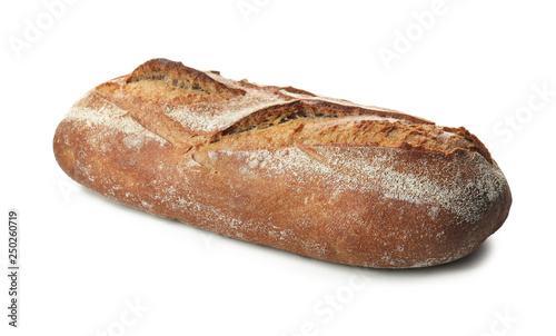 Loaf of fresh bread on white background
