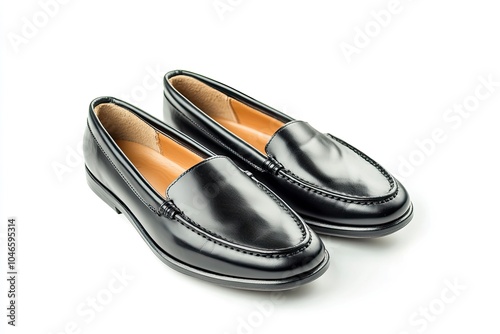 Loafers isolated on white background. Pair of Stylish Expensive Modern Leather Black Loafers Shoes. Fashion concept with generative ai