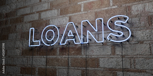 LOANS - Glowing Neon Sign on stonework wall - 3D rendered royalty free stock illustration. Can be used for online banner ads and direct mailers..