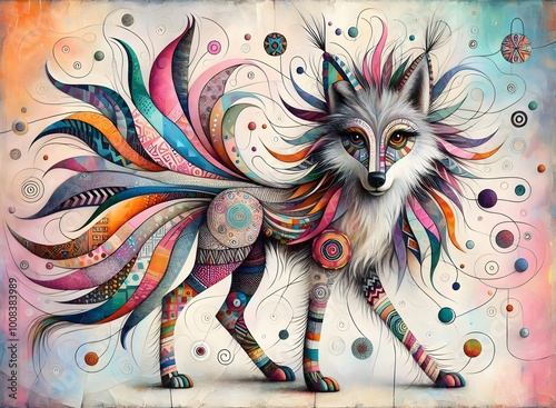 "Lobos Cósmicos: Espíritus de Colores"
