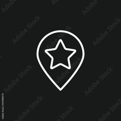Location Pin with Star on Black Background, Representing Favorite Places or Highlighted Locations, White Outline Icon