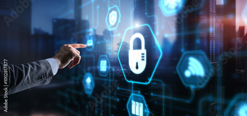 Lock Cyber Security on Virtual Screen Data Protection Technology Privacy concept