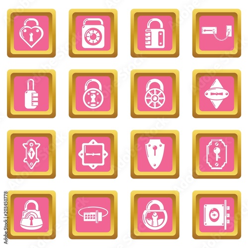 Lock door types icons set vector pink square isolated on white background
