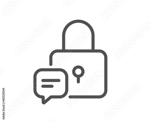 Lock line icon. Padlock with chat bubble sign. Message protection symbol. Quality design element. Line style lock icon. Editable stroke. Vector