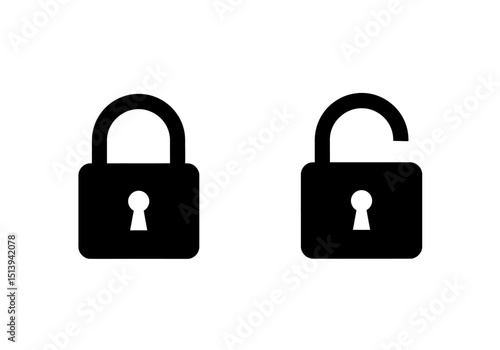 Locked and Unlocked Padlock Icons Black Silhouette Vector Graphics