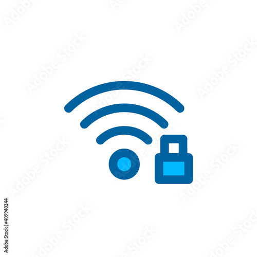 Locked wifi internet network icon in blue color style. Connection and network icon