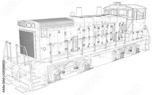 Locomotive wire-frame. Vector illustration. Tracing illustration of 3d.