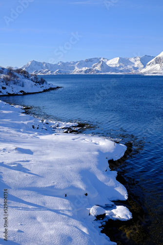 Lofoten Islands coast and mountains in Winter, Lofoten Islands, north Norway