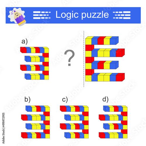 Logic game. IQ training test. Find the correct net. Practice worksheet for kids. (Answer is d)