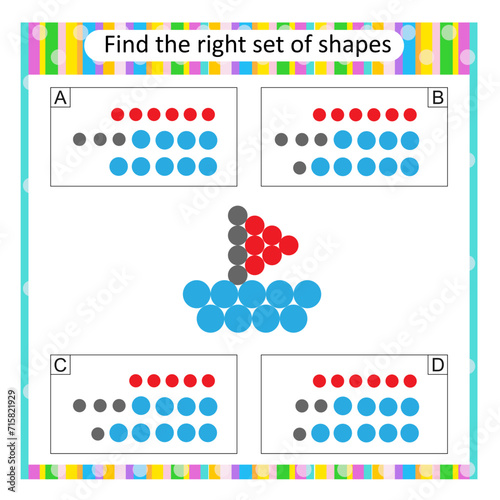 Logic puzzle for children. Find the correct set of cartoon sailboat. Answer is B.