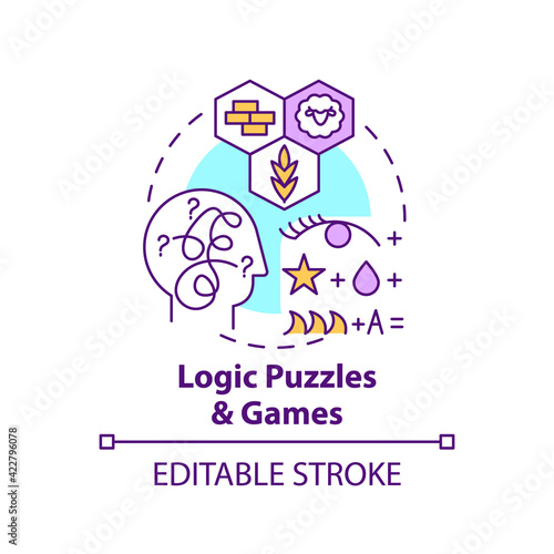 Logic puzzles and games concept icon. Exercise to improve critical thinking. Logical mind. Problem solving idea thin line illustration. Vector isolated outline RGB color drawing. Editable stroke