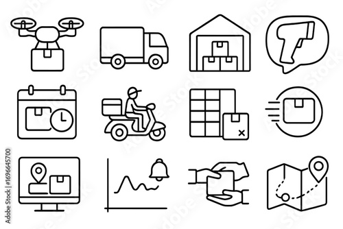 Logistics and delivery line icon set. shipping, package tracking in outline style